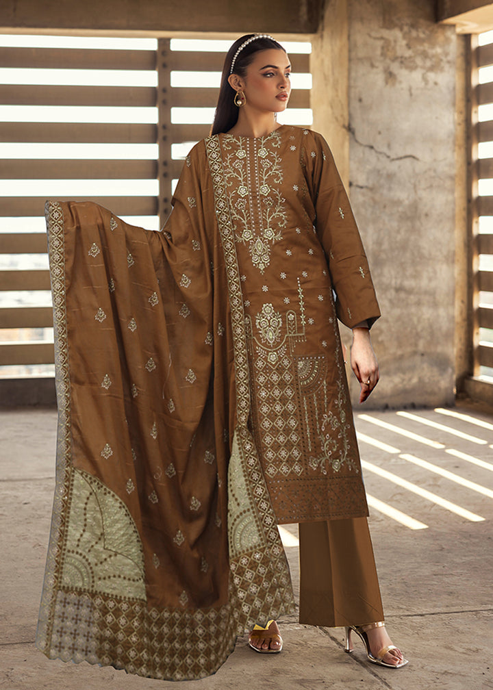 Plain Dyed Cotton trouser Embroidered Duppata with Four Side Organza Motifz