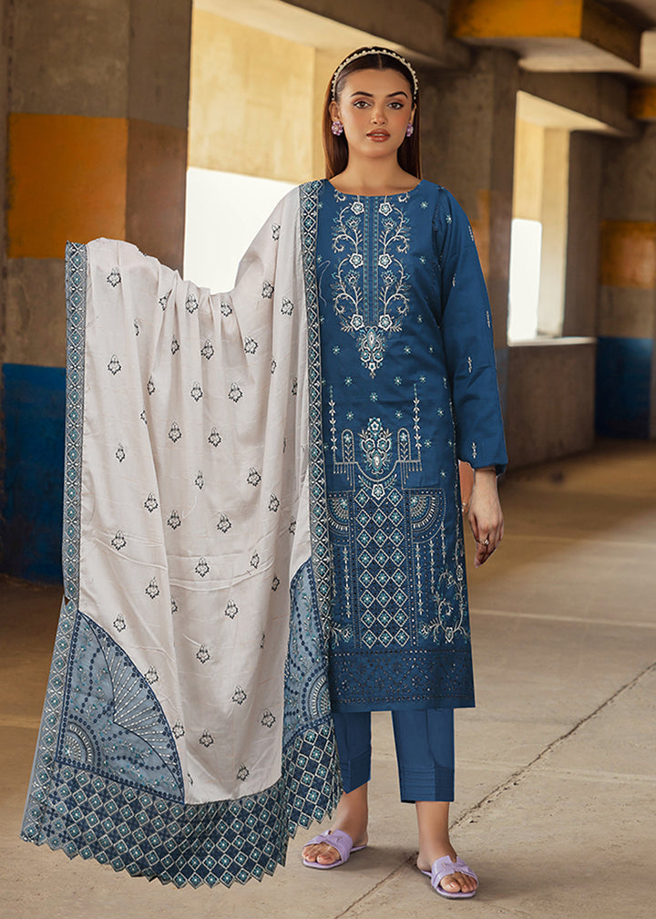 Plain Dyed Cotton trouser Embroidered Duppata with Four Side Organza Motifz