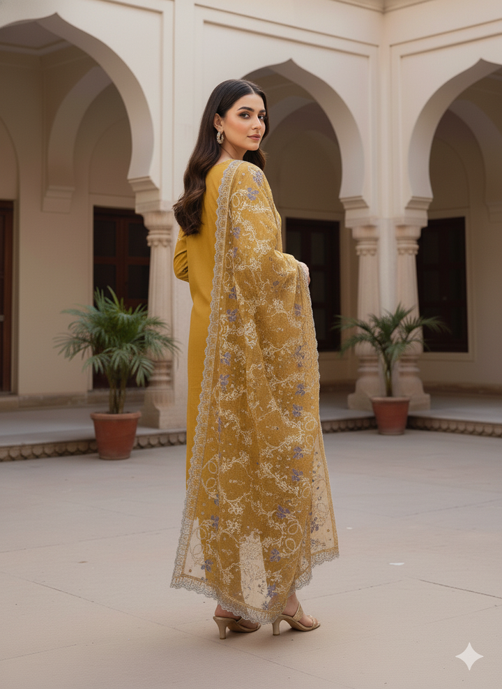Embroidered Dupatta with Lazer Pallu 4 Patti