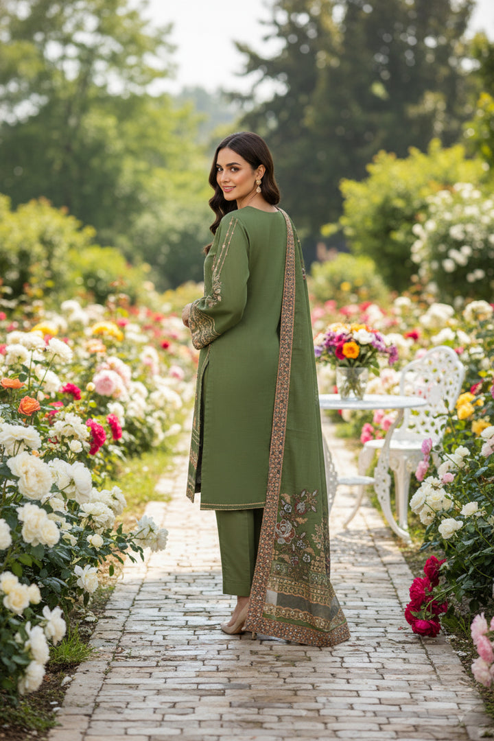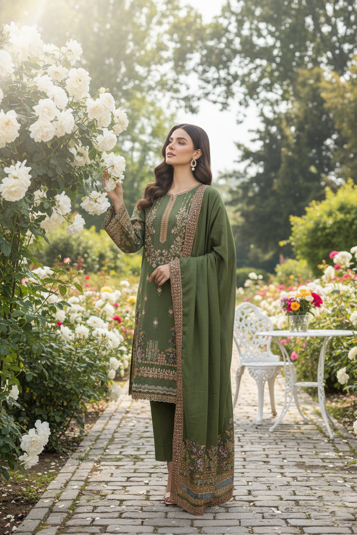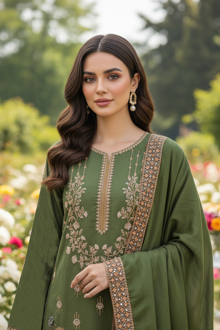 Embroidered Fancy Dhanak With Embroidered Wool Shawl