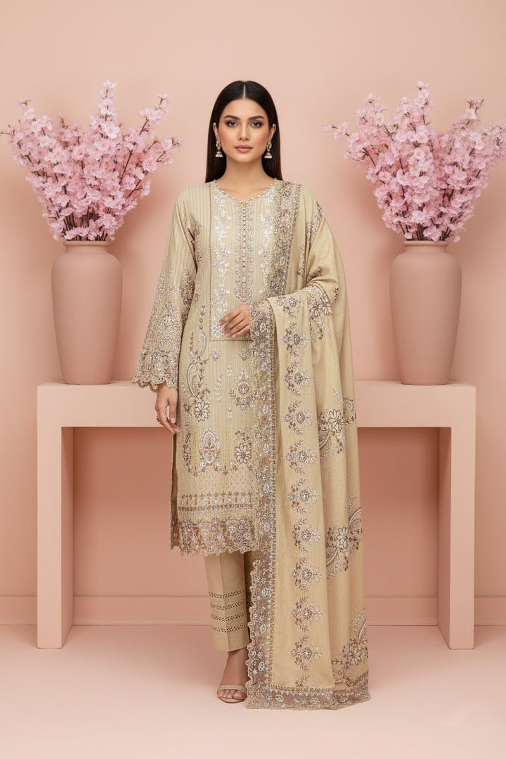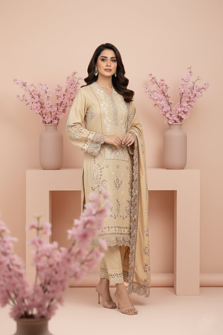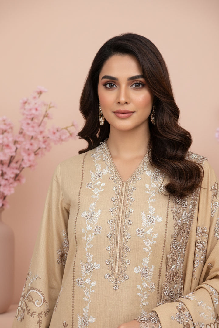 Embroidered Fancy Dhanak With Embroidered Wool Shawl