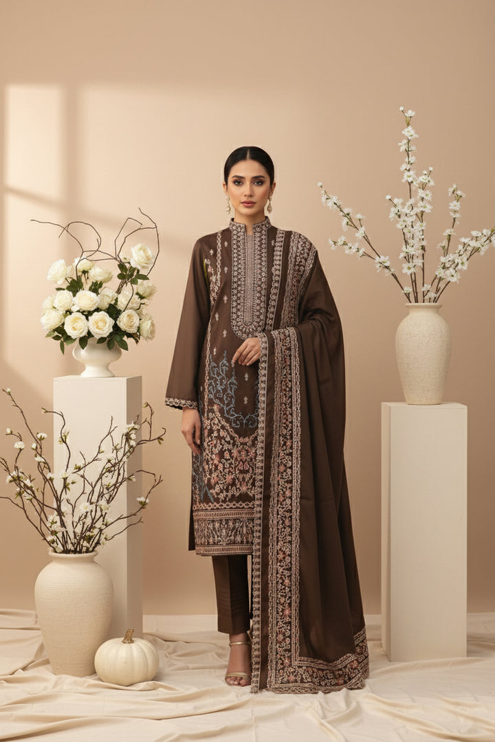 Embroidered Fancy Dhanak With Embroidered Wool Shawl