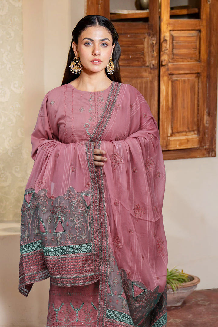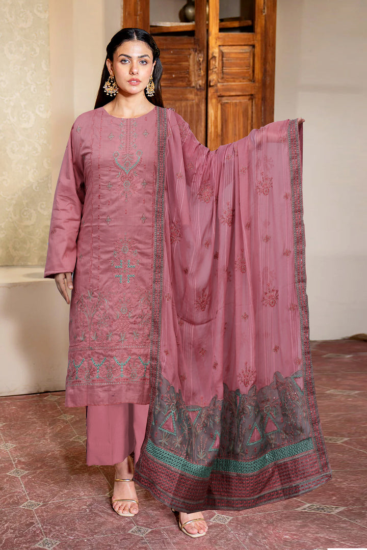 Plain Dyed Cotton trouser Embroidered Duppata with Four Side Organza Motifz